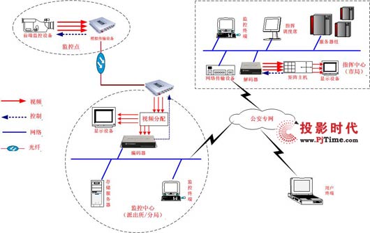 6.各級(jí)監(jiān)控中心解碼設(shè)備負(fù)責(zé)將數(shù)字視頻信號(hào)還原為模擬視頻信號(hào),輸出到矩陣主機(jī)、屏幕墻等模擬顯示設(shè)備。報(bào)警信號(hào)能夠?qū)崟r(shí)傳送到市局監(jiān)控中心。