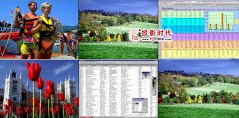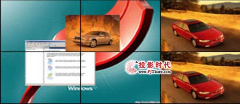 以一個(gè)2×2組合顯示一路計(jì)算機(jī)圖像,其他顯示兩路視頻圖像,并且可以在計(jì)算機(jī)畫面上開不同的視頻和計(jì)算機(jī)窗口,視頻和計(jì)算機(jī)窗口可以疊加、無(wú)級(jí)漫游。