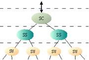 eWatch綜合應(yīng)用平臺采用逐級匯接的拓撲結(jié)構(gòu),可由監(jiān)控中心SC(Supervision Center)、監(jiān)控分中心SS(Supervision Station)、端站監(jiān)控單元SU(Supervision Unit)及監(jiān)控模塊SM(Supervision Module)組成樹形網(wǎng)絡(luò)拓撲。
