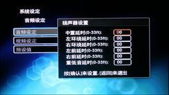 筆者首先進(jìn)入新科CBHD-9100設(shè)置菜單,分為音頻設(shè)定、視頻設(shè)定、預(yù)設(shè)值三個項(xiàng)目。音頻設(shè)定中提供了聲道選擇、揚(yáng)聲器設(shè)置等項(xiàng)目,其中揚(yáng)聲器設(shè)置項(xiàng)可以設(shè)置5.1音箱不同的時(shí)間延遲,個性化十足的同時(shí)也可以帶來更加震撼的音效。