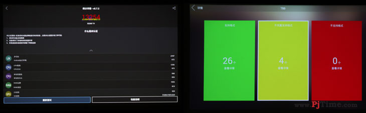 極米芒果小覓在安兔兔跑分方面的成績一般,13254分的成績跟我們前面所測試的效果完全不相符,說明極米在跑分方面沒有通過任何的技術手段去優(yōu)化從而“欺詐”高跑分成績。而在視頻測試方面,軟件所帶的30中不同的音視頻編碼/封裝格式視頻均能正常解碼,測試結果顯示僅有4個視頻格式會出現(xiàn)不能流暢播放(PS:因目前智能設備可通過各種優(yōu)化手段騙取測試軟件數(shù)據結果,以上測試數(shù)據僅供參考)。