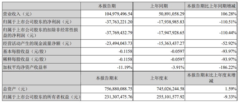 同期,迪威迅發(fā)布2022年一季度財報。2022年第一季度營收約1.05億元,同比增加106.28%;歸屬于上市公司股東的凈利潤虧損約3776萬元;基本每股收益虧損0.1158元