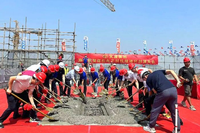 儀式現(xiàn)場,在熱鬧喜慶的禮炮聲中,隨著最后一方混凝土澆筑完畢,itc科技園項(xiàng)目全面封頂,標(biāo)志著項(xiàng)目工程建設(shè)取得了階段性勝利。
