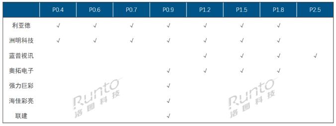 LED顯示屏典型廠商MIP產(chǎn)品覆蓋間距